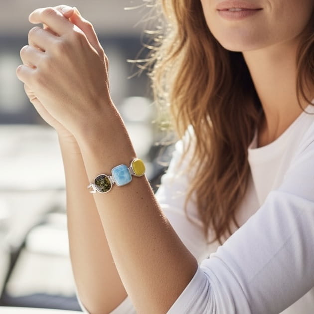 Larimar wzmacnia wewnętrzny spokój i kreatywność. Wspiera w nadmiernym umartwianiu się, w stanach lękowych czy poczuciu winy, pomaga pozbyć się ograniczeń. Występuje tylko na Dominikanie.