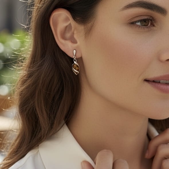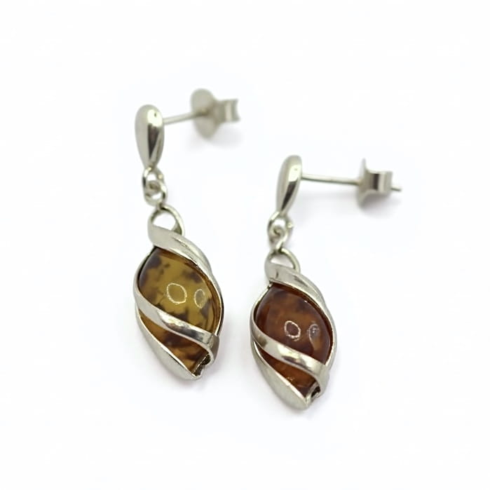 Srebrne kolczyki z bursztynem 925