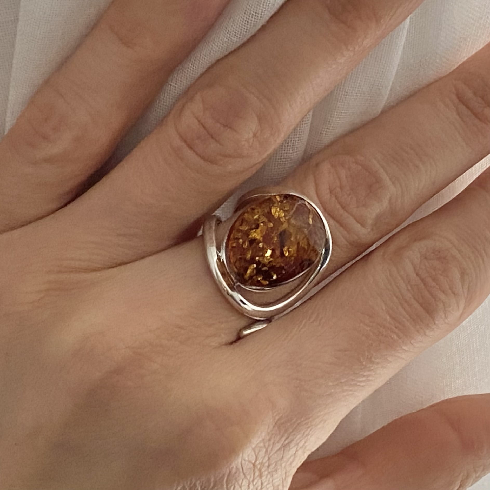 Srebrny pierścionek z bursztynem naturalnym próba 925