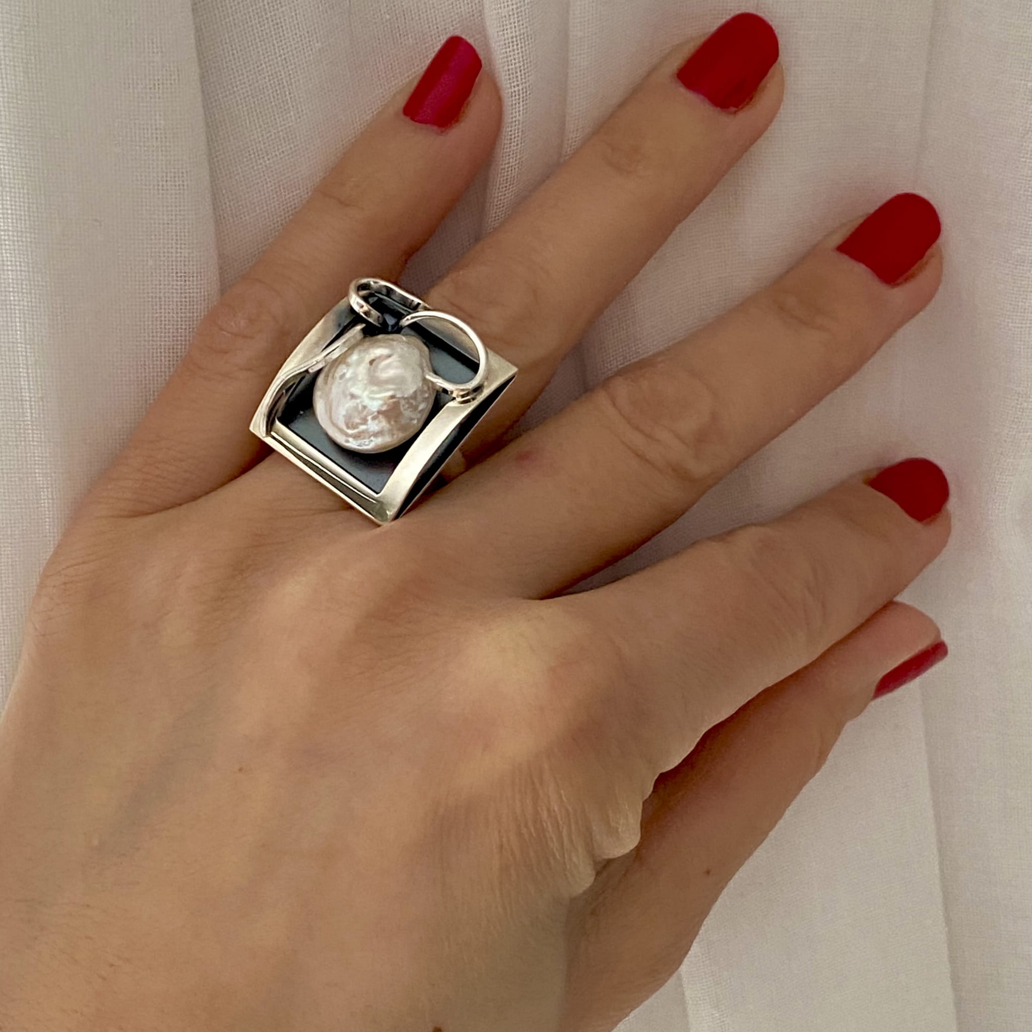 Masa perłowa, znana ze swojego wyjątkowego blasku i delikatnych odcieni, nadaje pierścionkowi niepowtarzalnego charakteru. Jej naturalne wzory sprawiają, że każdy egzemplarz jest unikalny.