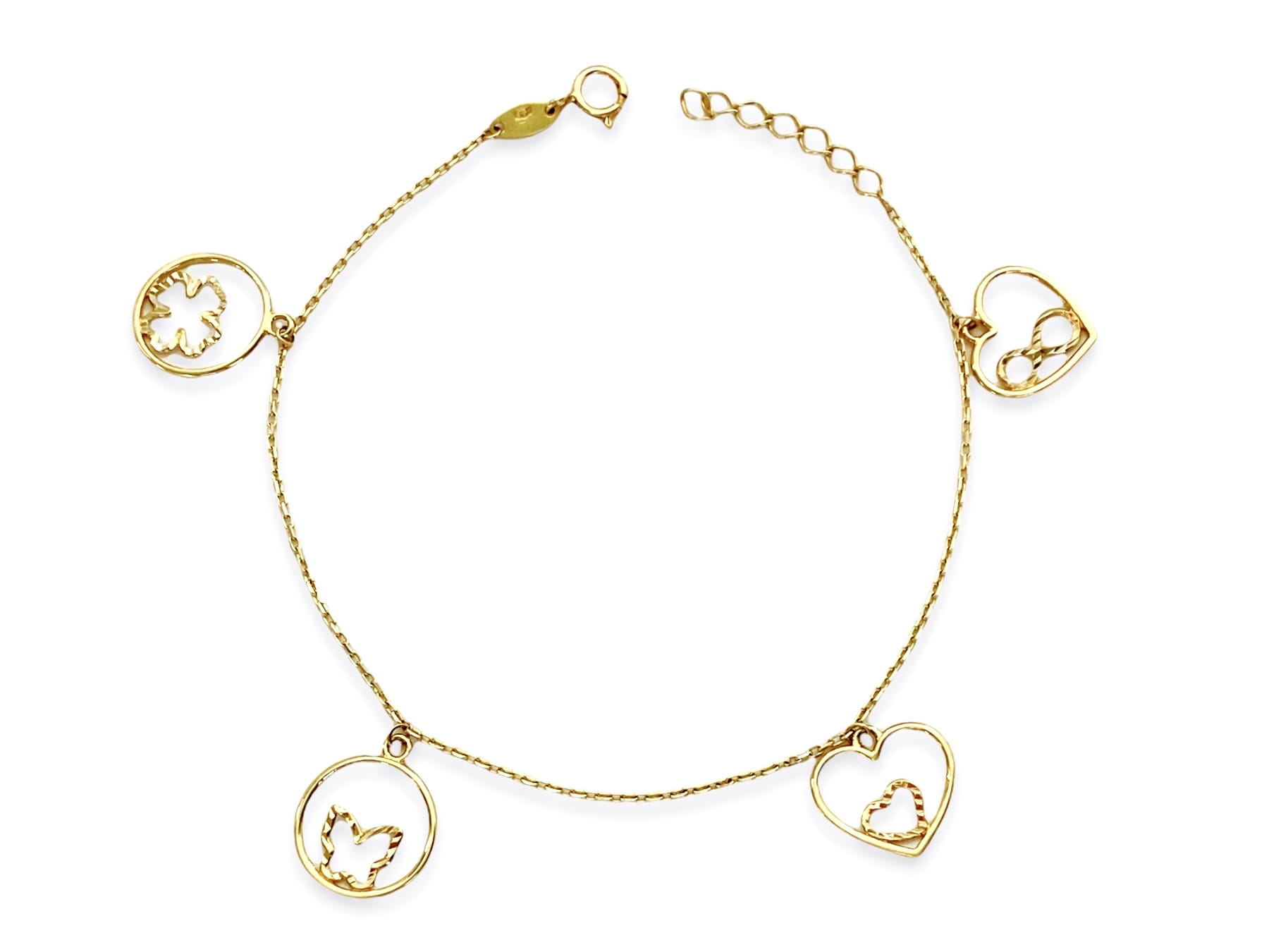 Złota bransoletka z ozdobnymi elementami, które są delikatnie nacinane, wykonana jest z najlepszej jakości złota próby 585. Bransoletka ma regulowaną długość, splot ankier pełny. Bransoletka pasuje do codziennych stylizacji każdej kobiety.