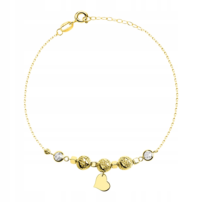 Ta złota bransoletka o próbie 585 to idealny dodatek do Twojej biżuterii. Wykonana z najwyższej jakości złota próby 585, bransoletka jest trwała, elegancka i wyjątkowa. Bransoletka posiada regulację długości, co pozwala na dopasowanie jej do nadgarstka i preferencji. Regulacja długości gwarantuje wygodę noszenia bez względu na rozmiar nadgarstka. Dodatkowo bransoletka jest ozdobiona kulkami i cyrkoniami, które dodają większej elegancji i uroku.