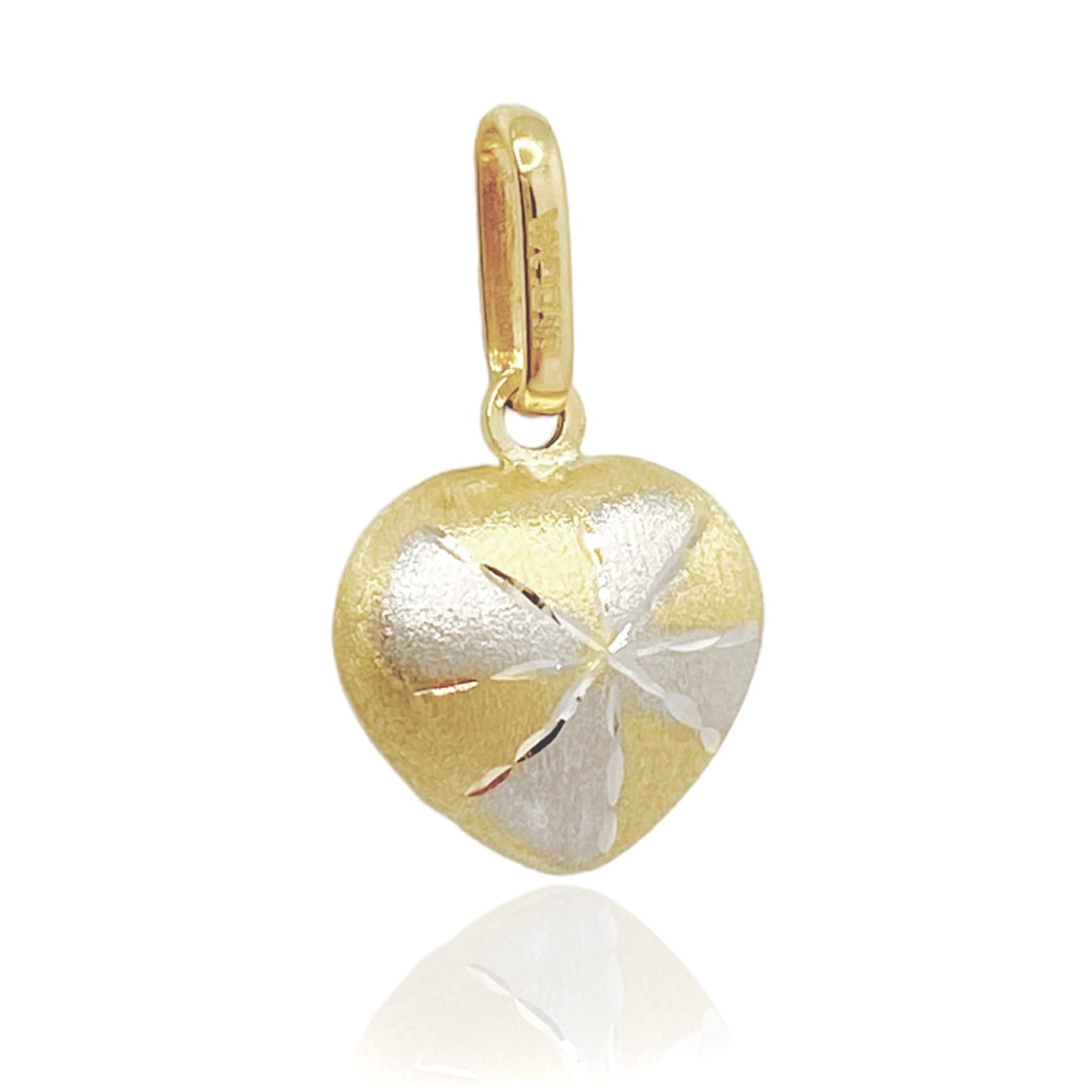 Złota zawieszka w kształcie serca, została wykonana z najlepszej jakości złota próby 585. Zawieszka jest dmuchana, częściowo diamentowana i rodowana. Pięknie odbija światło. Idealnie sprawdzi się jako pomysł na prezent na każdą okazję.