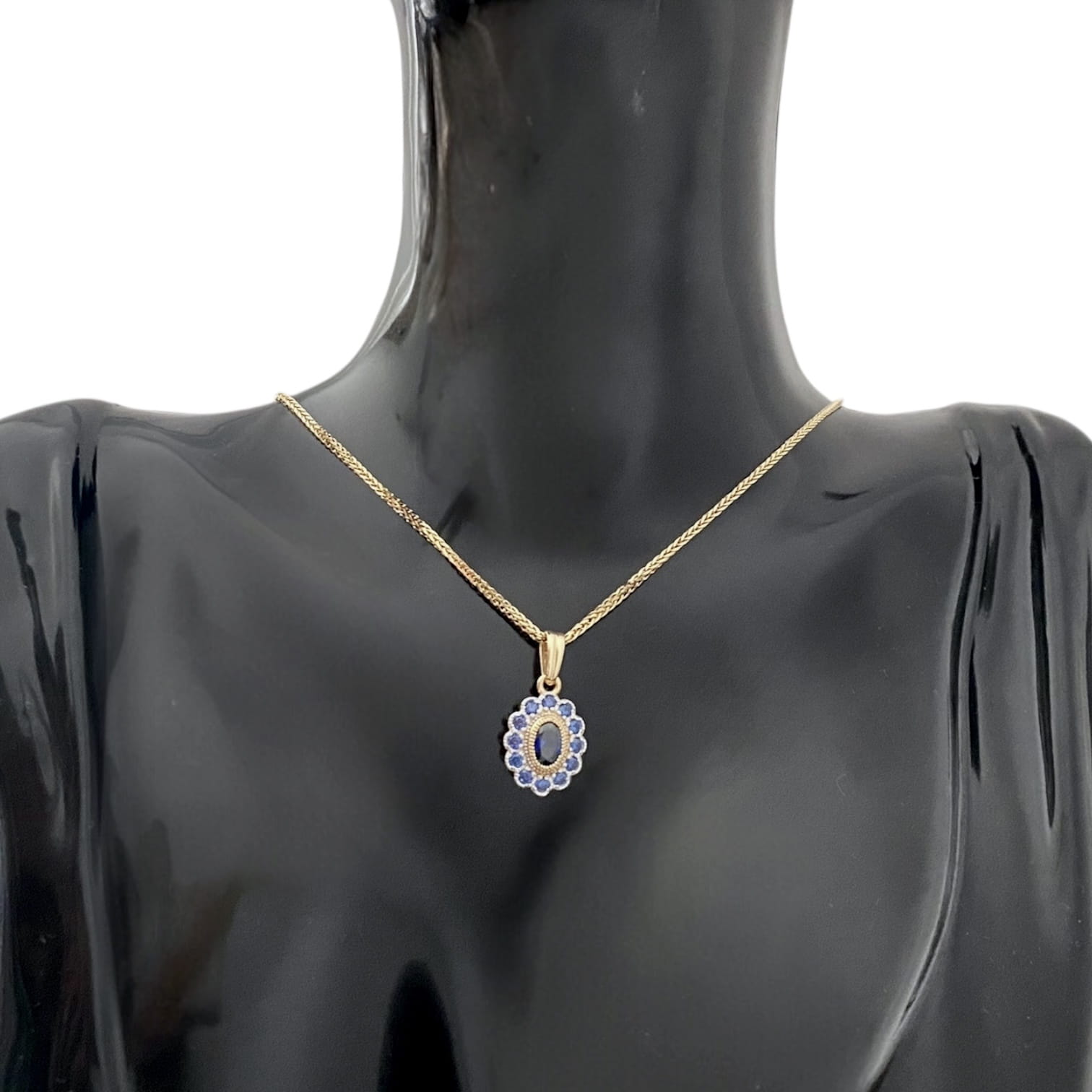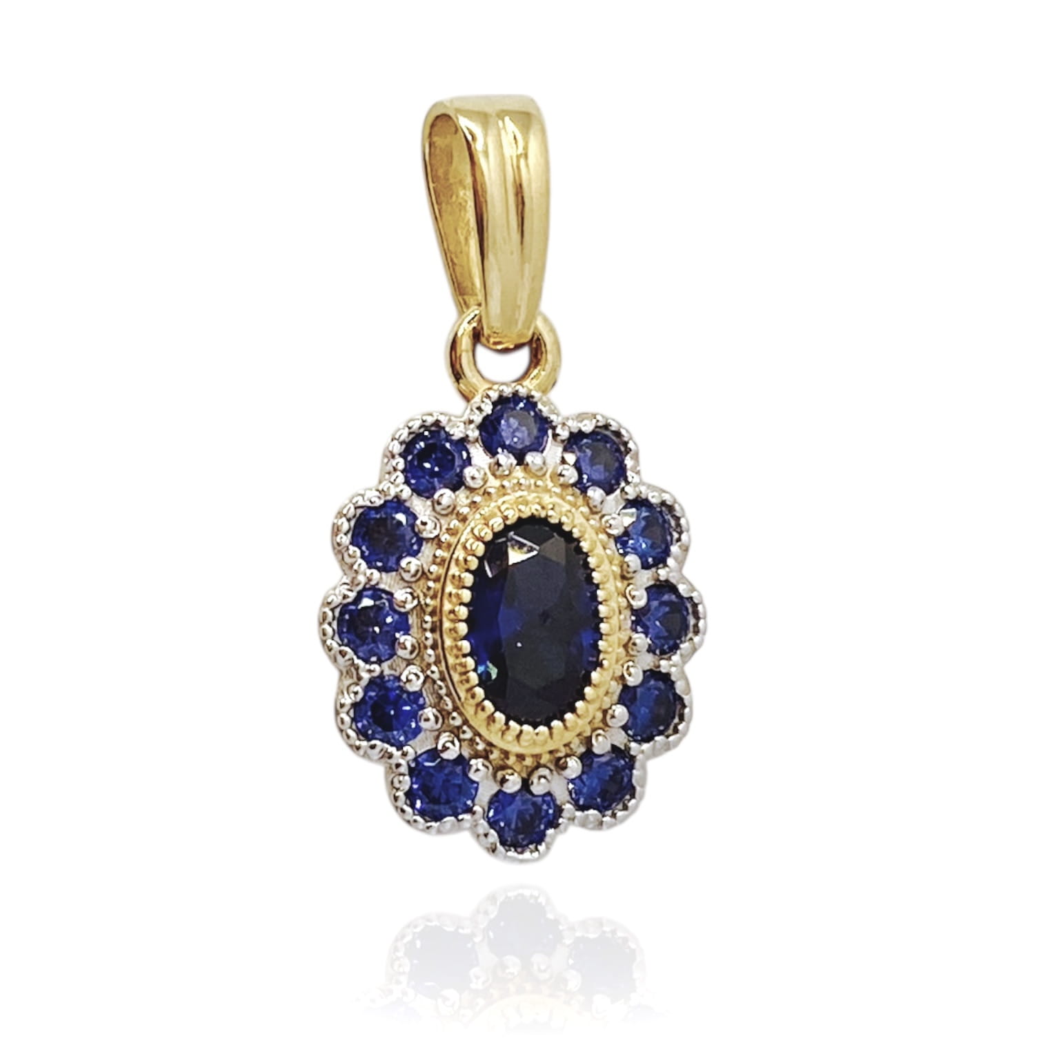 Złota zawieszka z szafirowymi kamieniami to idealne połączenie klasyki i nowoczesności. Wykonana z żółtego złota próby 585, zachwyca eleganckim owalnym kształtem i blaskiem głębokich, szafirowych cyrkonii.