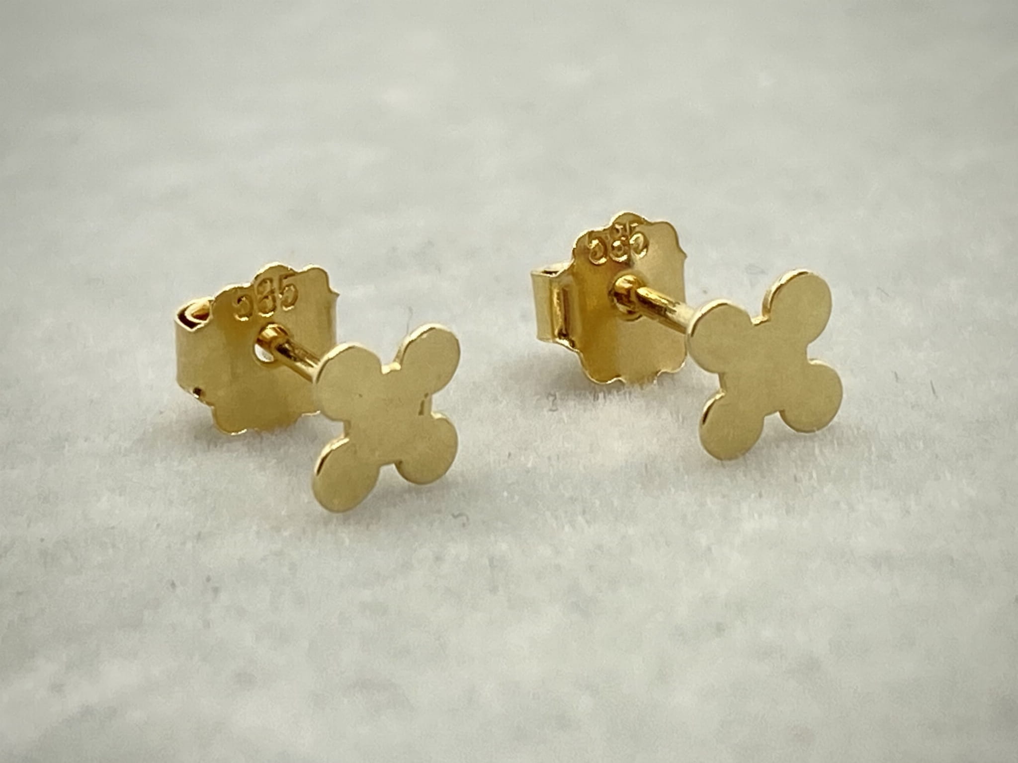 Złote kolczyki koniczynki, wykonane są z najlepszej jakości złota próby 585. Kolczyki zapinane są na sztyft. Idealnie sprawdzą się jako prezent na Komunię, Chrzest lub inną okazję.