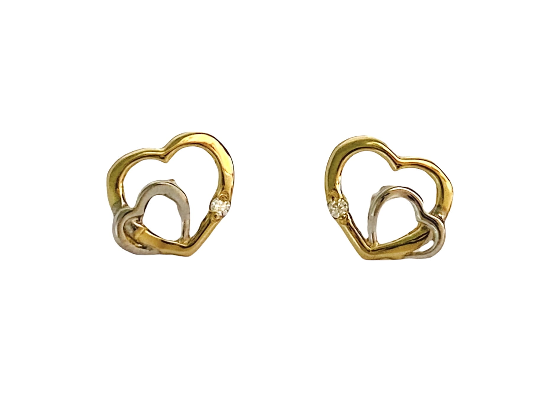 Złote kolczyki serca wykonane są z najlepszej jakości złota próby 585. Kolczyki są częściowo rodowane i ozdobione białymi cyrkoniami. Kolczyki zapinane są na sztyft.