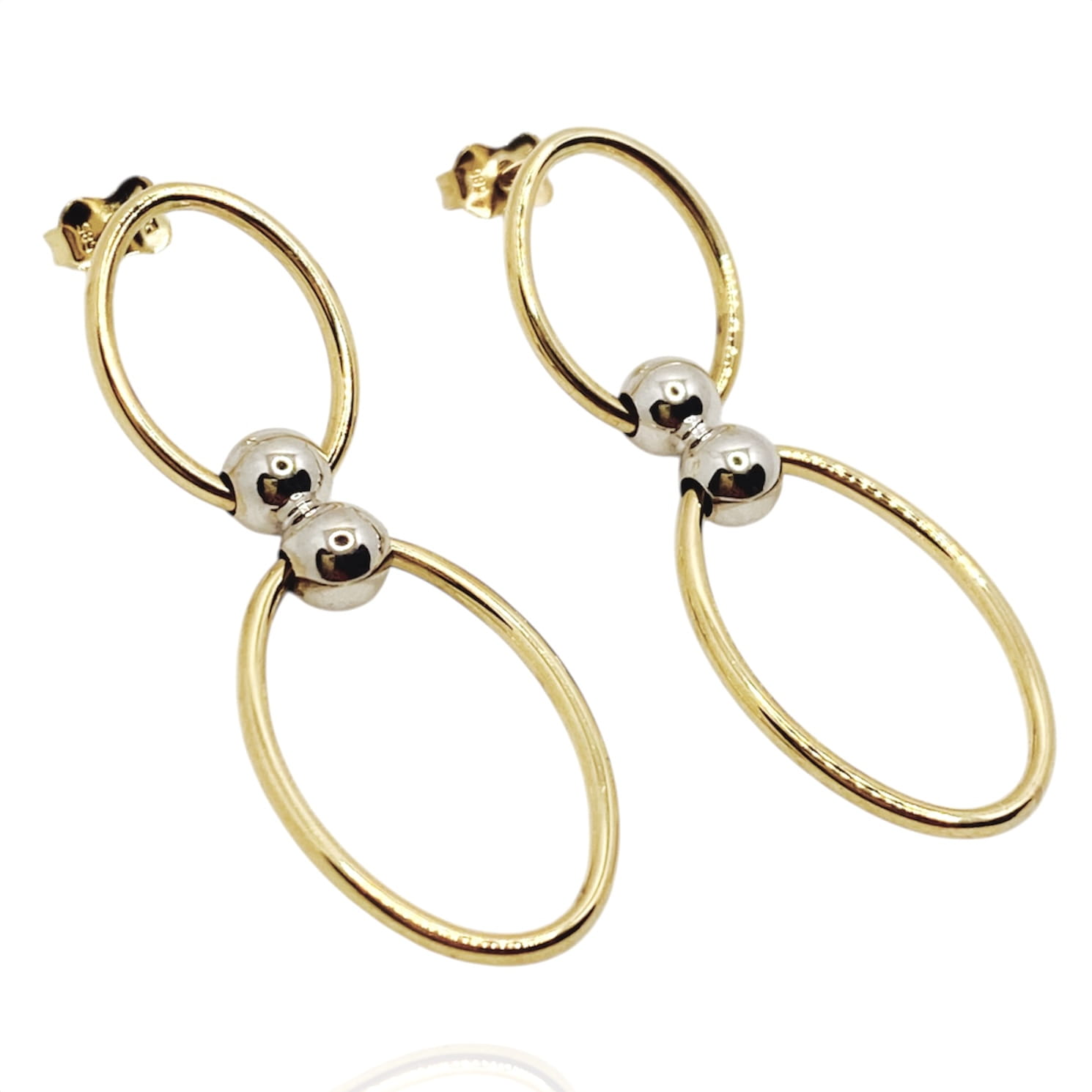 Wiszące kolczyki wykonane zostały z najlepszej jakości złota próby 585. Prezentują się bardzo elegancko. Kolczyki są doskonałym dodatkiem do każdej okazji - od codziennego noszenia po bardziej formalne wydarzenia. Ich oryginalny i piękny desing sprawia, że docenią je kobiety w każdym wieku.