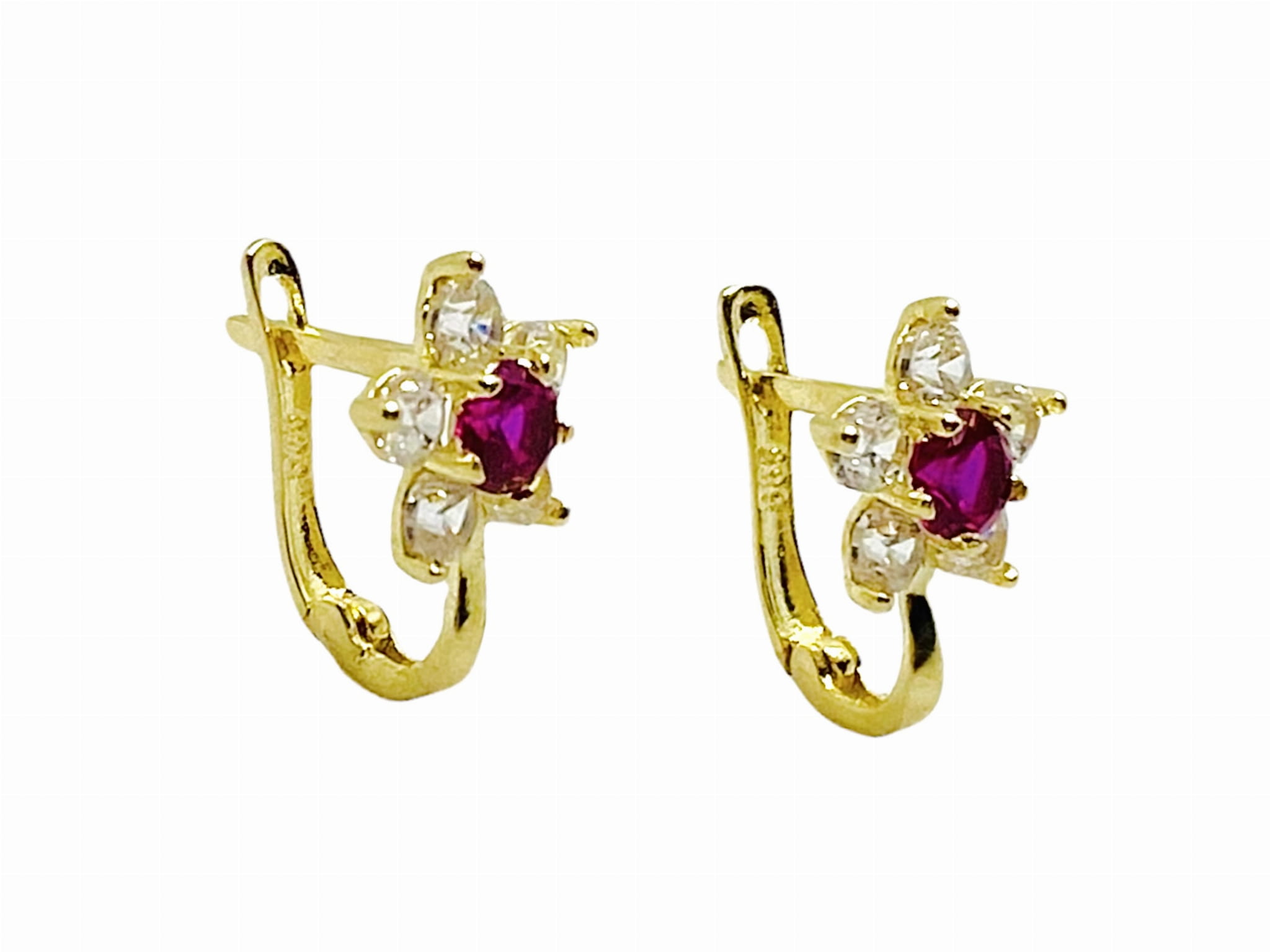 Złote kolczyki ozdobione cyrkoniami, zapięcie angielskie, wykonane są z najlepszej jakości złota próby 585. Kolczyki są idealne dla każdej dziewczynki.