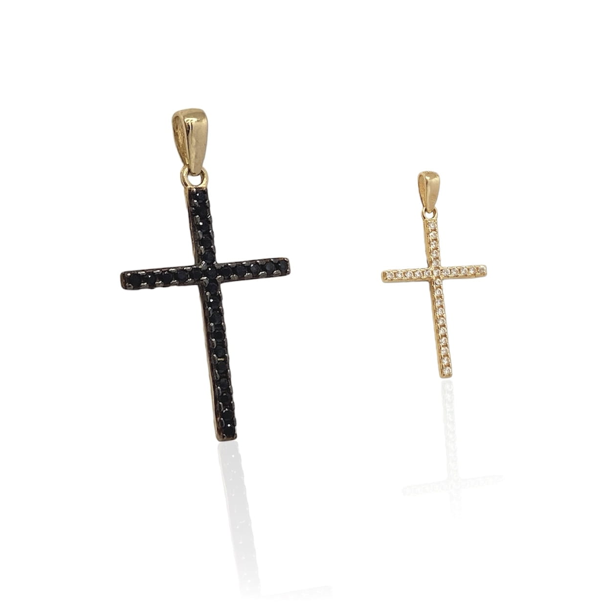 Złoty krzyżyk z cyrkoniami dwustronny próba 585