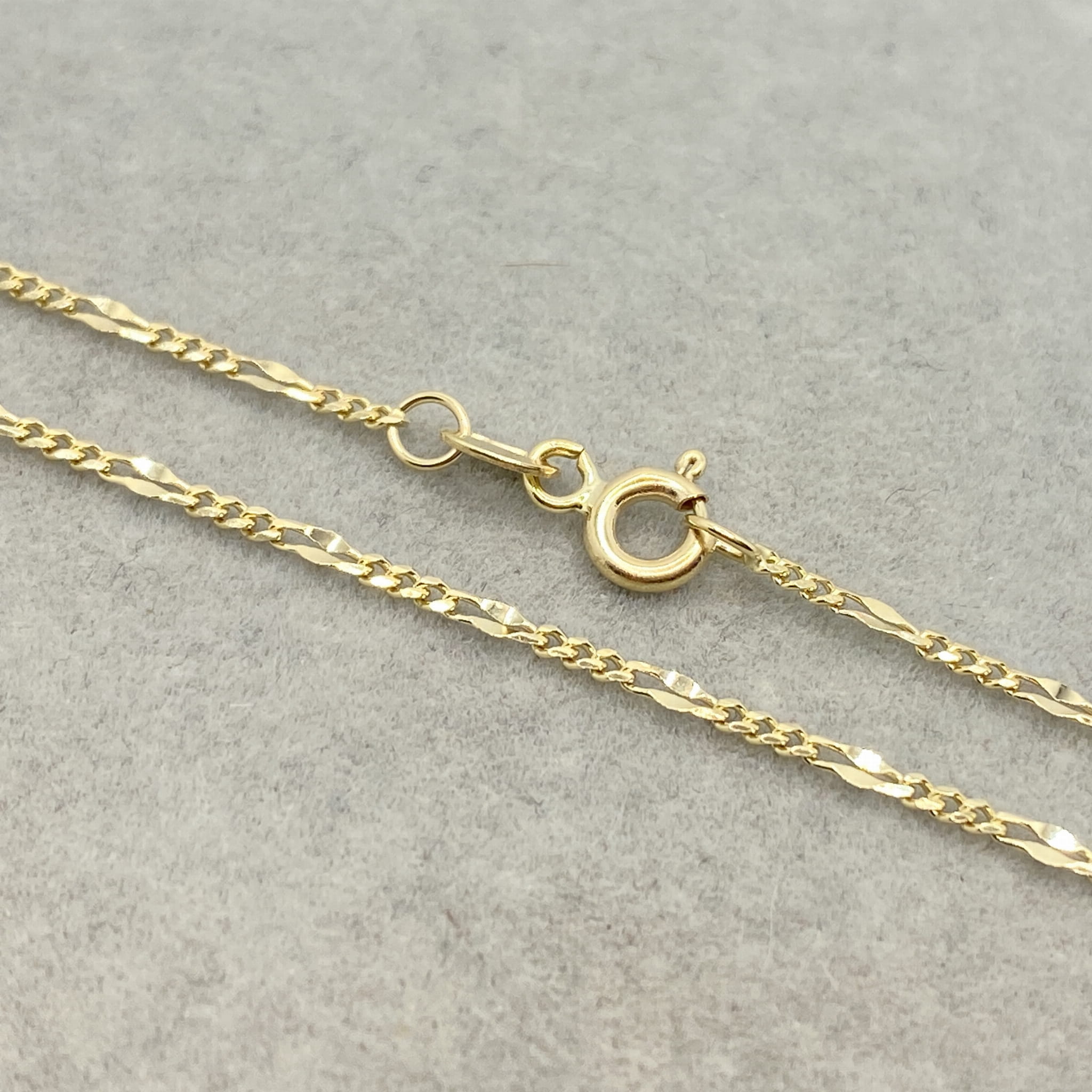 Złota łańcuszek o splocie figaro usta, został wykonany z najlepszej jakości złota próby 585. Łańcuszek jest pełny. Idealnie sprawdzi się jako pomysł na prezent. Pięknie się błyszczy.