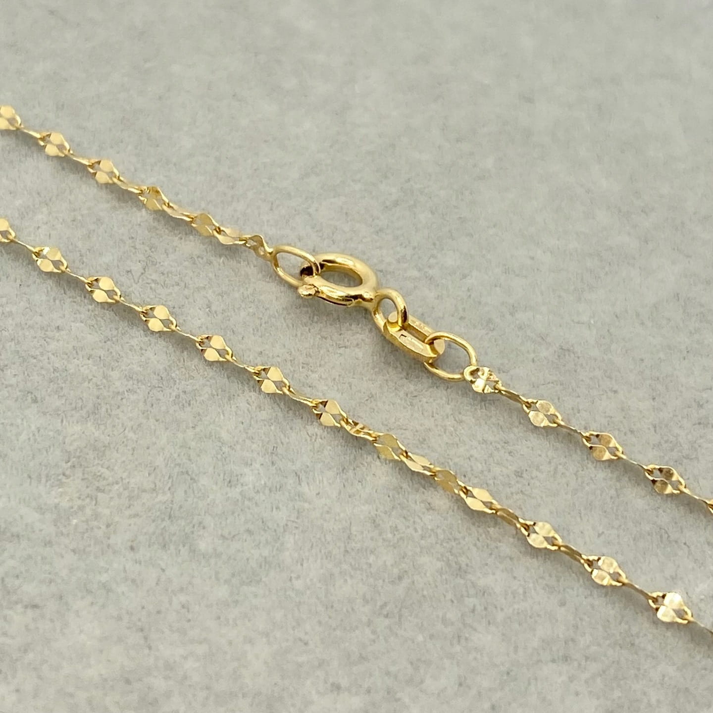 Ten piękny, złoty łańcuszek próby 585 jest doskonałym dodatkiem dla osób poszukujących elegancji i klasy. Wykonany z najwyższej jakości złota, łańcuszek jest nie tylko piękny, ale również trwały i wytrzymały. Splot łańcuszka nadaje mu unikalny wygląd i dodaje solidności. Każde ogniwo jest starannie wykonane, tworząc idealne połączenie między szykiem a solidnością.