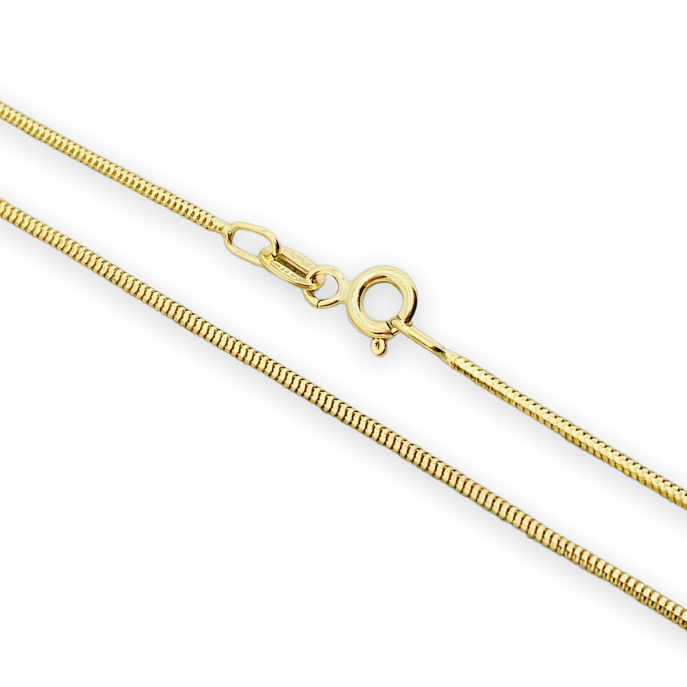 Stylowy złoty łańcuszek wykonany ze złota próby 585 (14k) w splocie żmijka (snake) to elegancka propozycja dla osób ceniących subtelny blask i ponadczasowy design. Splot żmijka jest niezwykle gładki i błyszczący, co sprawia, że łańcuszek prezentuje się luksusowo i podkreśla każdą stylizację.