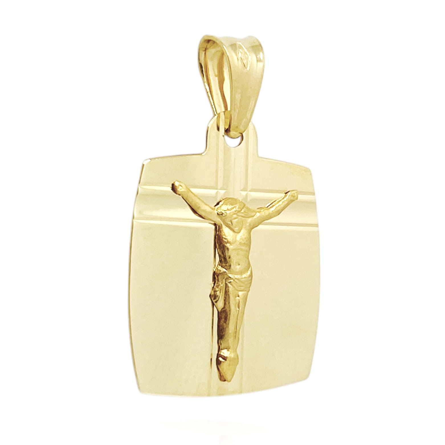 Złoty krzyżyk z wizerunkiem Jezusa wykonany został z najlepszej jakości złota próby 585. Pięknie prezentuje się ze złotym łańcuszkiem o splocie pancerka lub figaro.