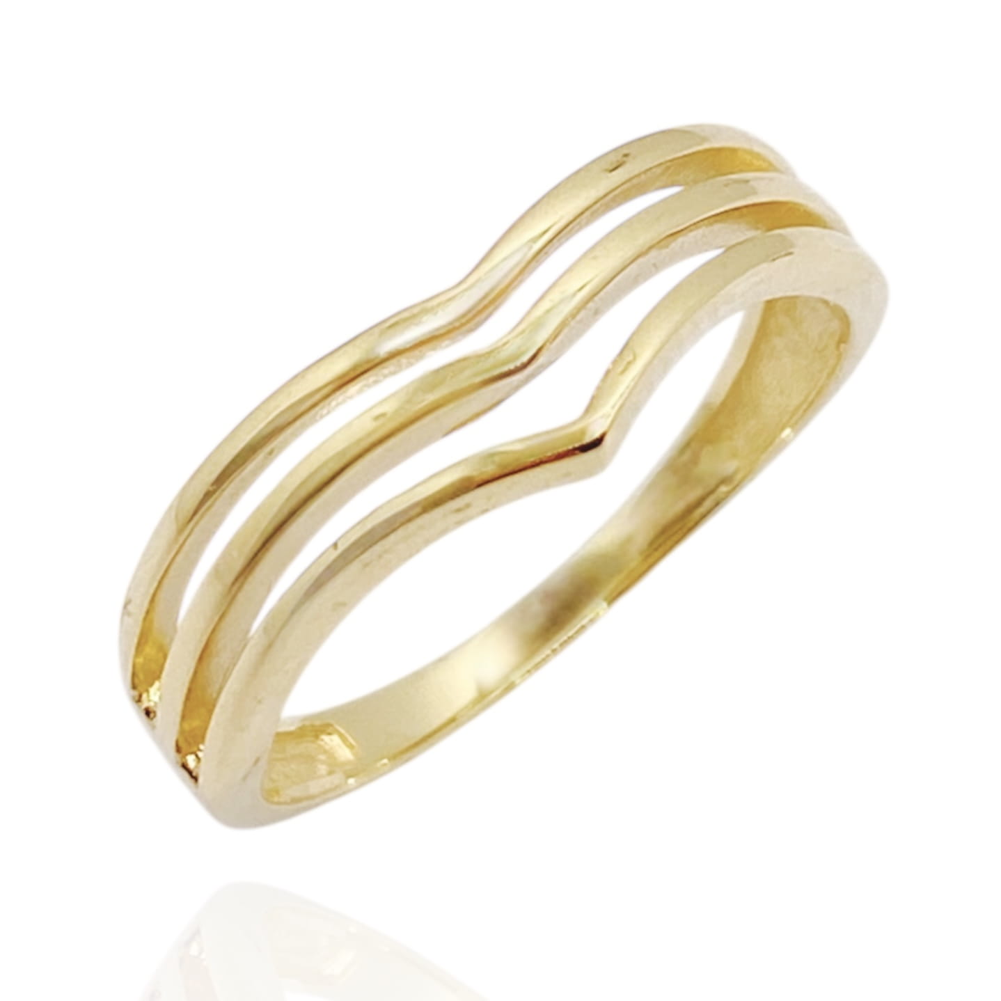 Subtelny i wyjątkowy złoty pierścionek próby 585 zachwyca nowoczesnym designem inspirowanym falą.