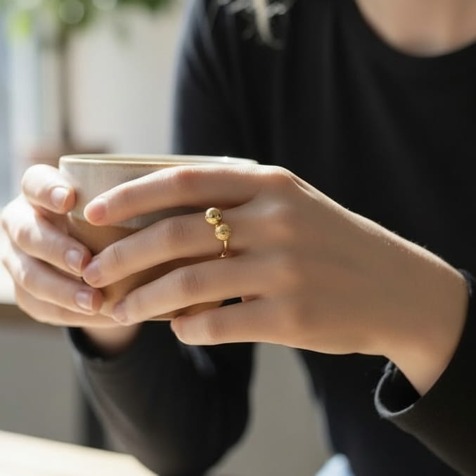 Stylowy pierścionek ze złota próby 585 zachwyca prostą, a zarazem oryginalną formą. Dwie kuleczki – jedna gładka, druga diamentowana – tworzą harmonijną i modną kompozycję. Minimalistyczny design sprawia, że pierścionek doskonale komponuje się zarówno z codziennymi stylizacjami, jak i bardziej eleganckimi zestawami. To biżuteria, która podkreśla indywidualny styl i kobiecą subtelność.