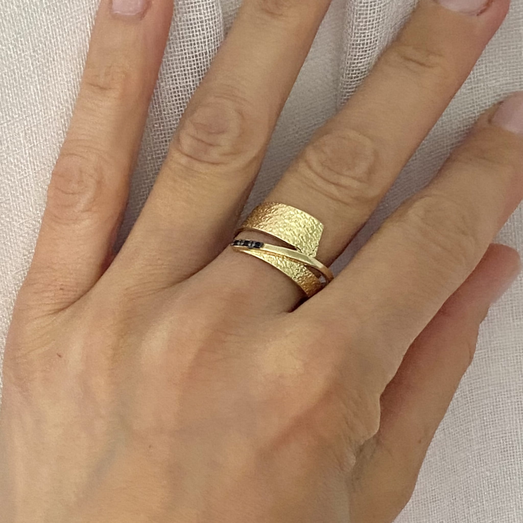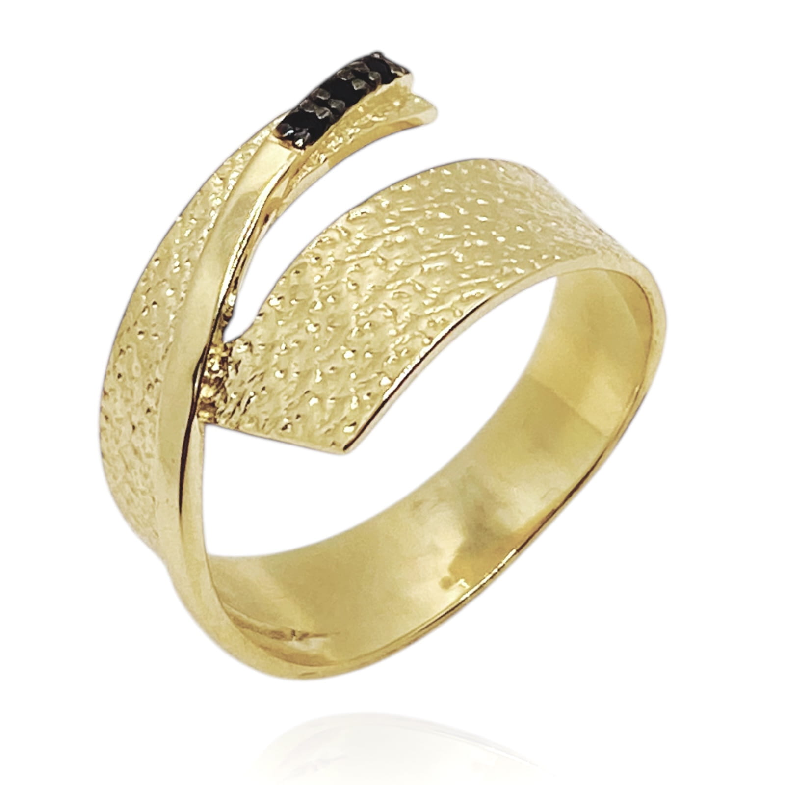 Pierścionek został ozdobiony czarnymi cyrkoniami, dodając większego blasku i elegancji. Delikatny, ale jednocześnie wyrazisty, pierścionek będzie idealnym dodatkiem do każdej okazji - zarówno do codziennych stylizacji, jak i eleganckich, wieczorowych kreacji.