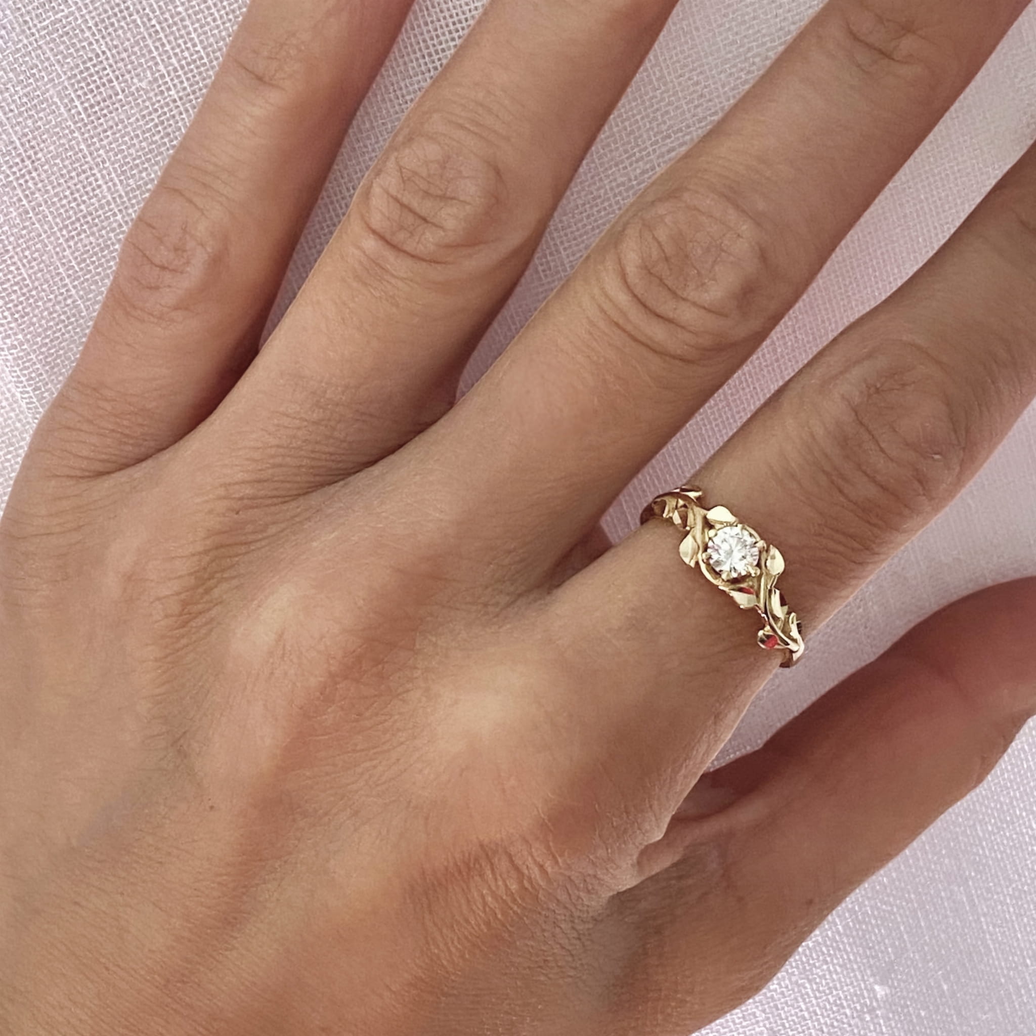 Złoty pierścionek ozdobiony białą cyrkonią, wykonany jest z najlepszej jakości złota próby 585. Pierścionek idealnie pasuje jako prezent na różne okazje.