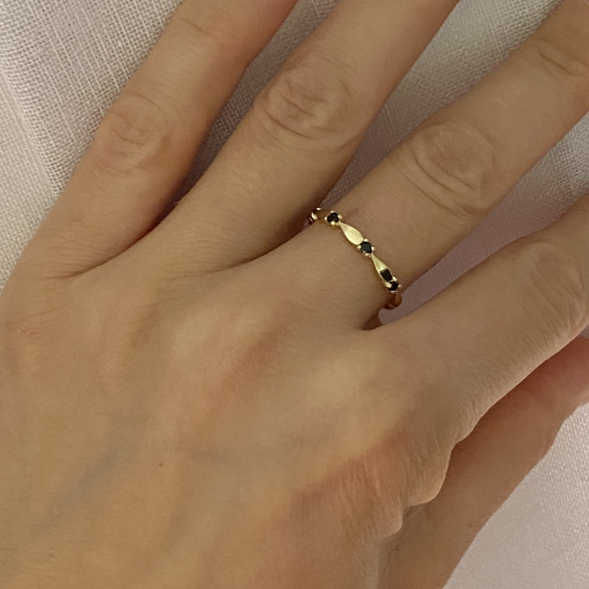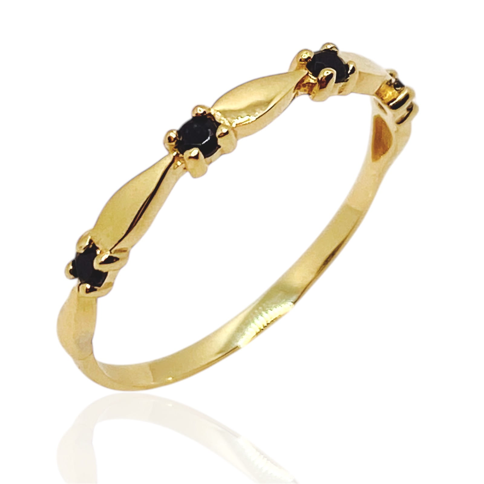 Piękny, subtelny pierścionek ozdobiony czarnymi cyrkoniami, wykonany jest z najlepszej jakości złota próby 585. Sprawdzi się idealnie jako prezent na każdą okazję. Pięknie prezentuje się w towarzystwie innej biżuterii.