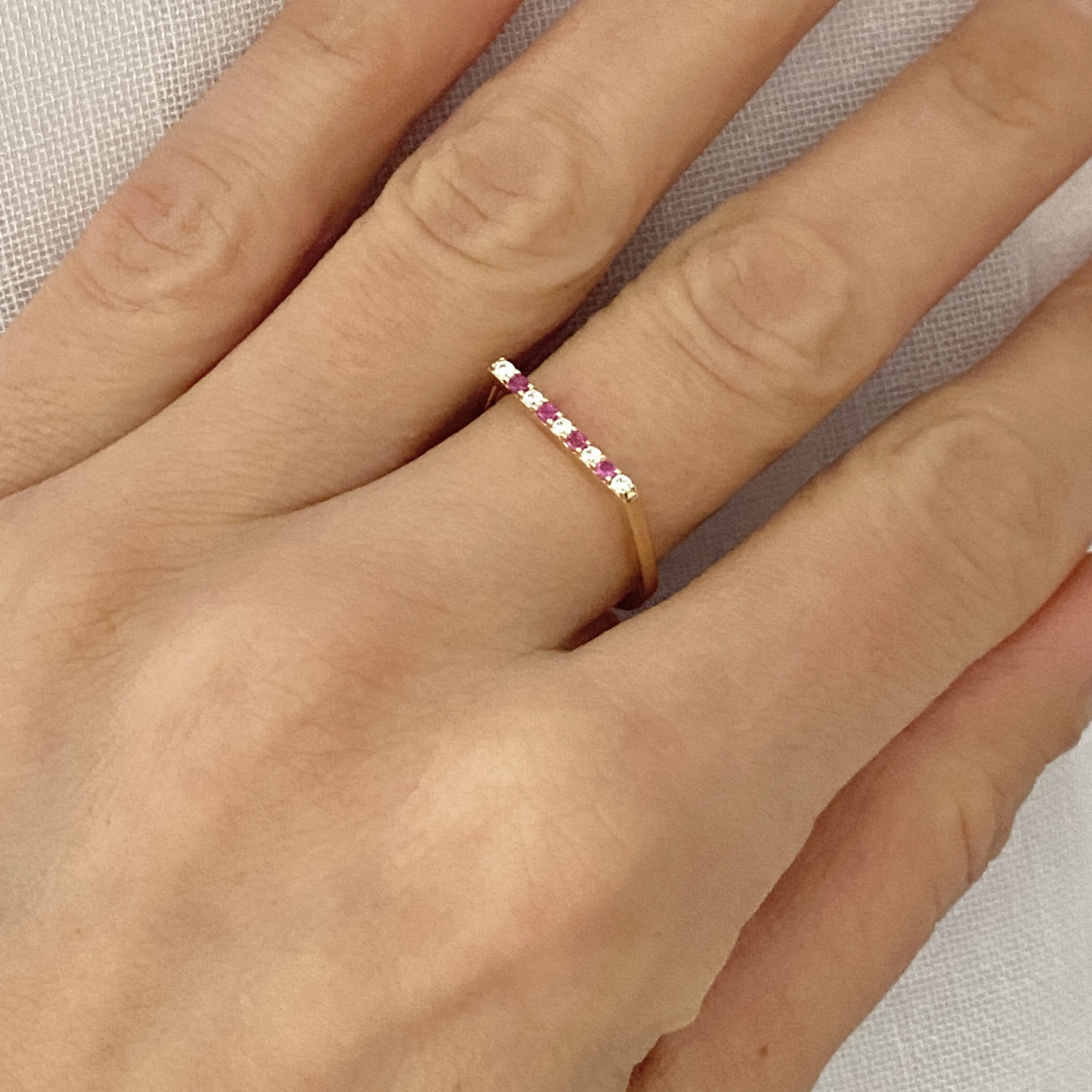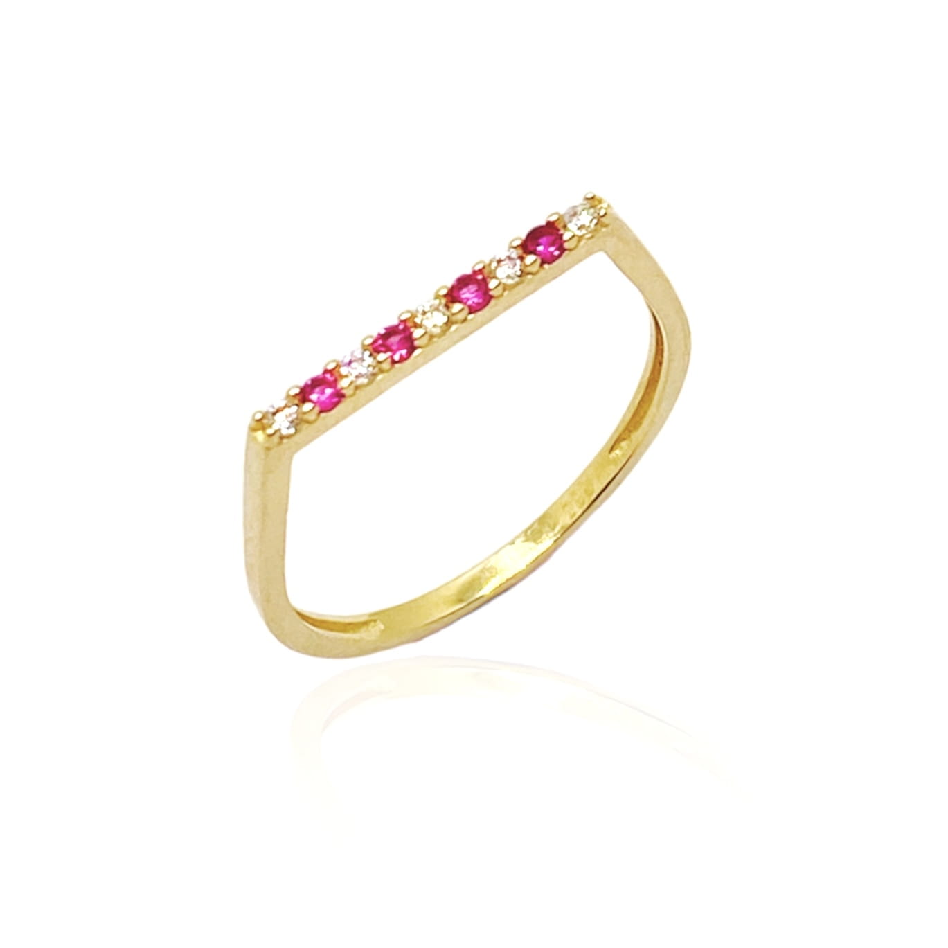 Piękny, delikatny złoty pierścionek ozdobiony kolorowymi cyrkoniami, wykonany jest z najlepszej jakości złota próby 585. Sprawdzi się idealnie jako prezent na każdą okazję. Pięknie prezentuje się w towarzystwie innej biżuterii.