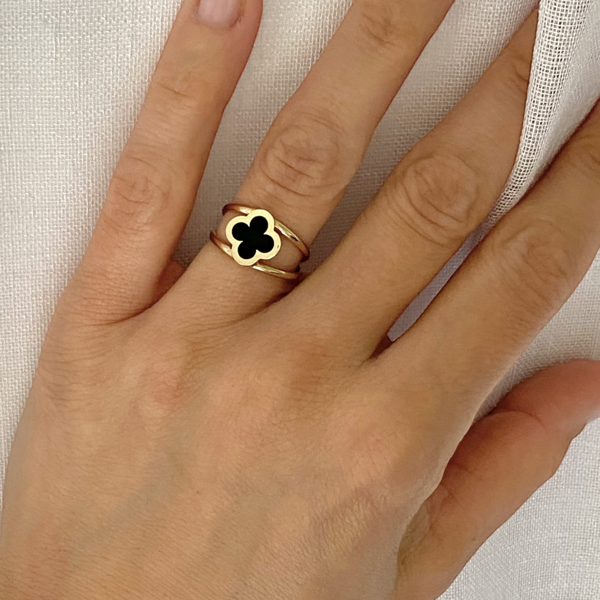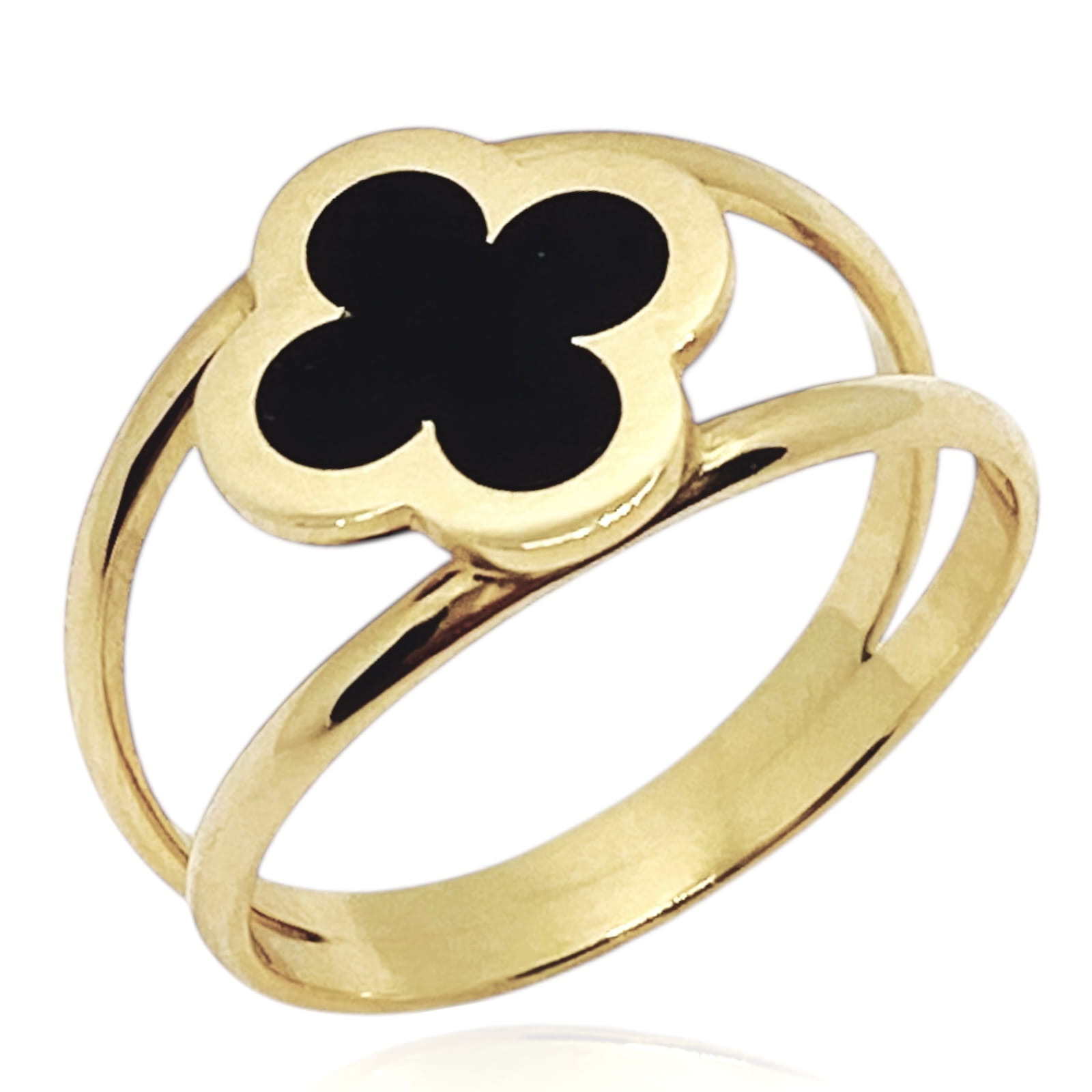 Złoty pierścionek z emaliowaną koniczynką wykonany jest z najlepszej jakości złota próby 585. Elegancki, delikatny wzór idealnie pasuje jako prezent na każdą okazję.